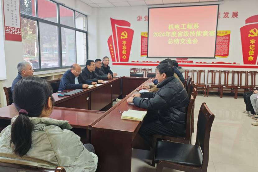 2025年1月8日,机电工程系在系会议室召开2024年度省级技能竞赛经验交流会,机电工程系领导班子成员、各赛项指导老师和参赛队员参加了会议。