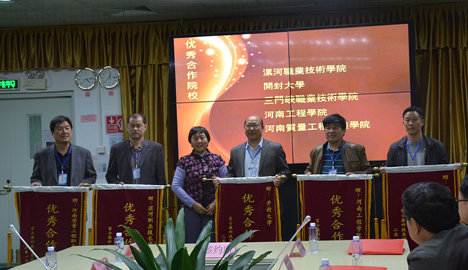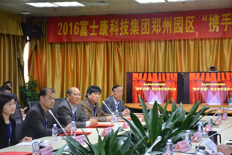 2016年4月11日,受郑州富士康邀请,副院长代骅参加了在郑州富士康举行的校企合作签约仪式,协议合作内容涵盖了机器人、SMT等多个领域,标志着我院与富士康集团的合作已在中原大地扎根成长。同时,由于校企双方良好的合作关系,郑州富士康特向我院颁发了优秀合作院校锦旗一面。出席仪式的还有省教育厅及其他院校的代表。
