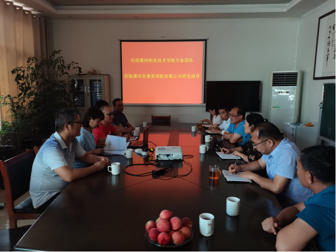 会上智能制造科技创新平台项目负责人张群威老师对平台的主要研究方向、科研力量和前期准备工作做了介绍,李银祥总经理对在明胶搅拌设备的技术需求上也向学校科研团队人员做了说明,在共商共赢的基础上,双方对项目合作达成了初步的一致意见,该项目的技术支持将为企业新厂区建设提供设备改造可行性方案,助力企业扩大生产规模,提高经济效益。