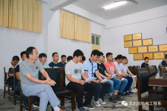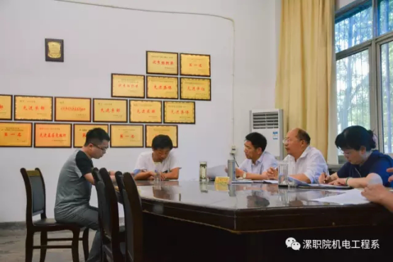 2017年6月1日下午5:00,机电工程系在系会议室召开机电工程系学生党支部预备党员转正暨新党员宣誓会议,会议讨论和表决了张寒等8位预备党员同志的转正问题,并为彭飞等9名新发展预备党员举行入党宣誓仪式。系党总支书记翟迎朝、副书记娄琳、学生党支部书记朱建营及委员等参加会议。会议由系党总支委员学生支部书记朱建营主持。