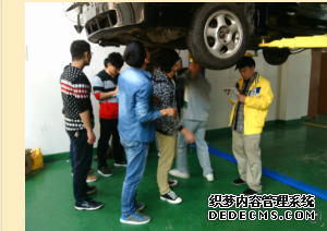 活动开始,老师按照学生各自情况对同学们进行分组,之后,由组长制定计划,各组成员严格按照计划实施。具体实施过程分四步进行:①举升车辆;②汽车底盘检查;③整理工具;④活动总结。