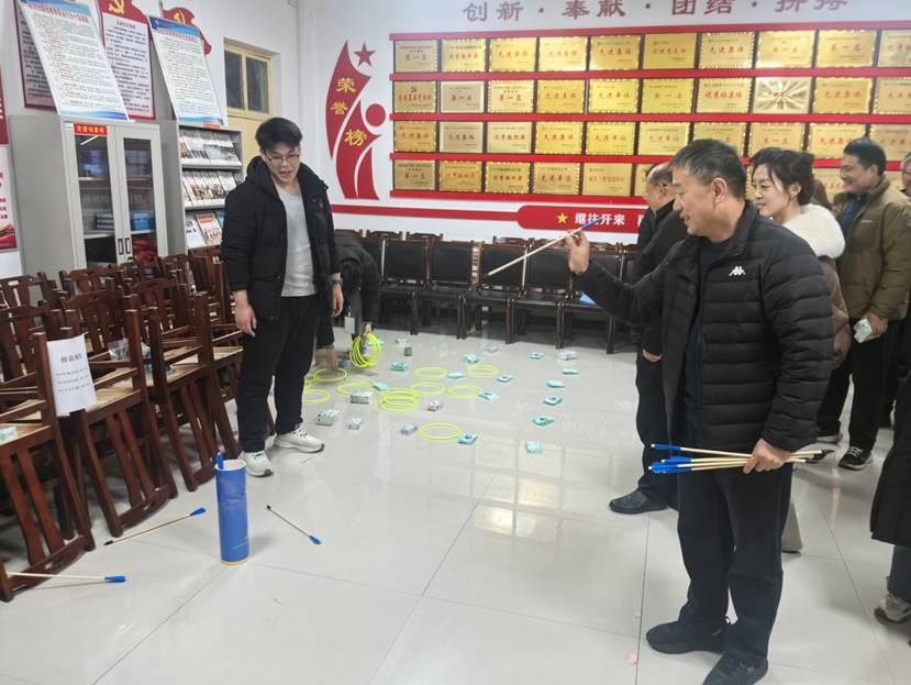 壶中纳福,一矢中的,投壶区前,教师们屏息凝神,手持箭矢,瞄准壶口,每一次投中都会引来阵阵喝彩。这项传统游戏不仅考验技巧,更传递着新年“投中好运”的美好寓意。