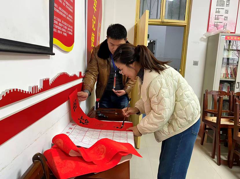 挥毫迎新,福至运来,墨香四溢的书法区内,各位教师挥毫泼墨,写下一个个“福”字,一幅幅红纸黑字洋溢着浓浓的年味与文化气息,同时也是对学院的新年祝愿。