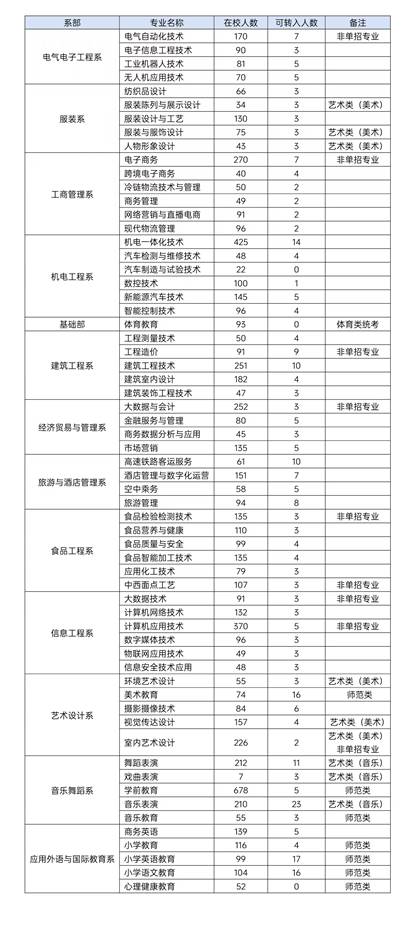 永利集团2024级各专业可接纳转入学生计划
